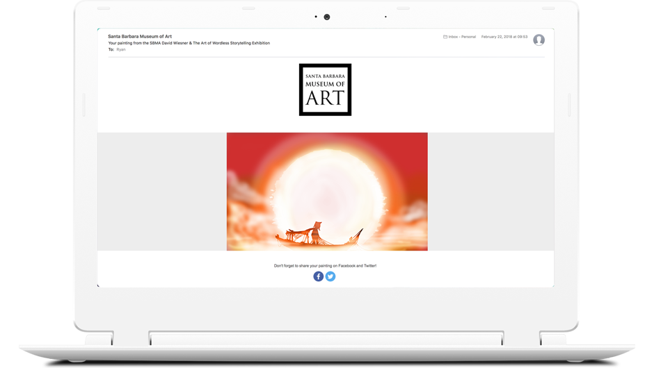Email a patron a copy of their artwork when submitted and share to social media. Customize the email template with an unique message and style.