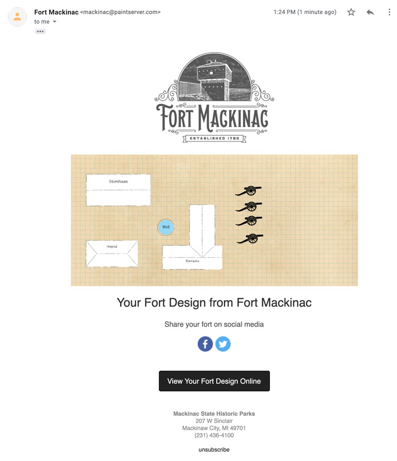 Patron’s who submit their design receive a copy of their fort via email.